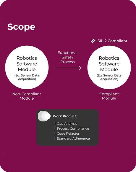 - Identify the work products for the entire project. Rework the technical content and the process to make the module or library/Functional Safety compliant